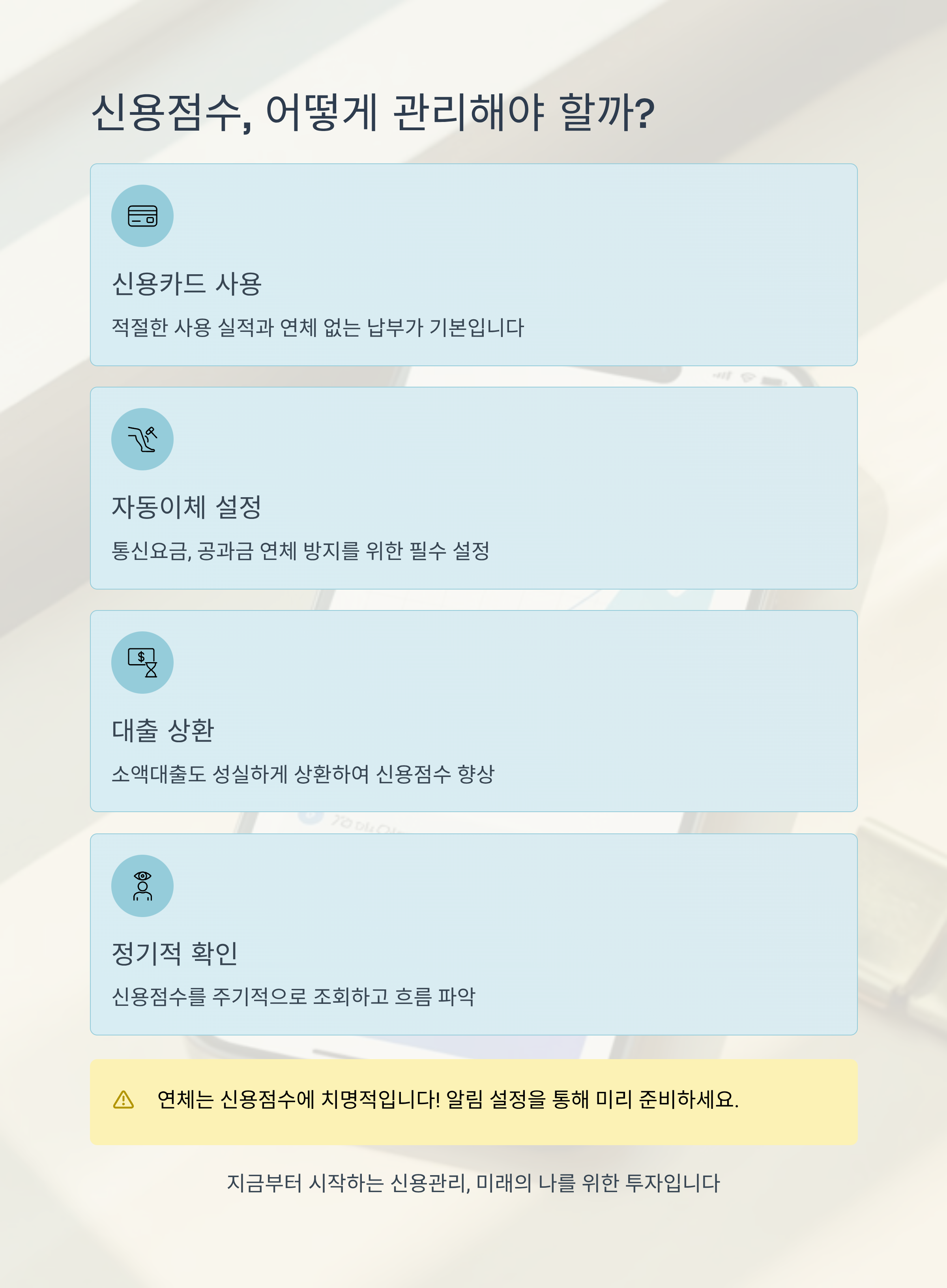 신용관리에 있어 가장 중요한 건 연체 방지입니다.